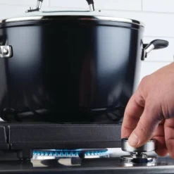 - SILICONE GRIP HANDLES: Dual riveted handle is finished with silicone grips to remain cooler while cooking on the stovetop