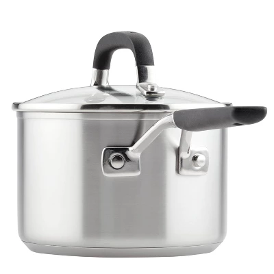 - QUICK, EVEN HEATING: KitchenAid saucepan has been crafted from stainless steel with an aluminum core base to spread heat quickly and evenly