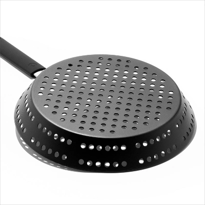 Lighter, easier and stronger—there’s a reason carbon steel is the choice of pros. Pre-seasoned to get you started, this OXO Obsidian Outdoor Carbon Steel 12-In Frying Pan develops a naturally non-stick layer with use that’s ideal for grilling delicate fish, cooking veggies over an open flame, or smoking bacon on the grill. The more you use the pan, the better the non-stick patina layer will be. Precision engineered for powerful performance, this pan travels is an easy way to supercharge your outdoor cooking. This pan also comes with a removable silicone sleeve to keep cooking comfortable. Hand wash only.