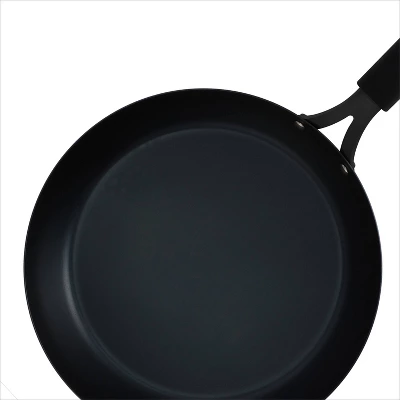 Lighter, easier and stronger—there’s a reason carbon steel is the choice of professional kitchens. Pre-seasoned to get you started, this OXO Obsidian Carbon Steel 12-In Frypan develops a naturally non-stick layer with use that’s ideal for frying delicate fish, crafting an omelet, or getting a perfect sear on pork chops. The more you use the pan, the better the non-stick patina layer will be. Precision engineered for powerful performance anywhere you need it, this pan travels effortlessly from stovetop to grill. This pan also comes with a removable silicone sleeve to keep cooking comfortable. Oven safe up to 600˚F/315˚C. Hand wash only.