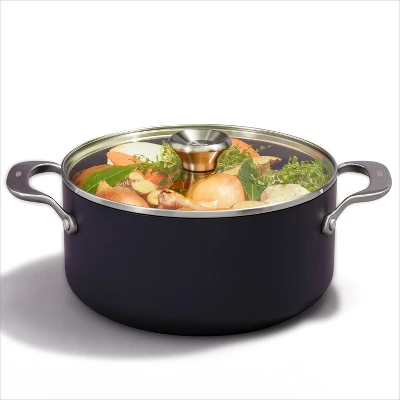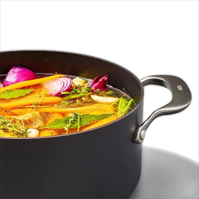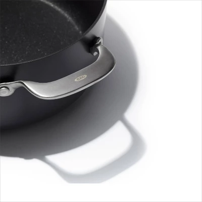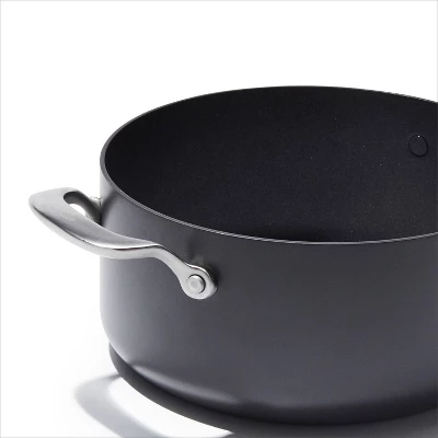 Get more room and better performance with the OXO Ceramic Professional Non-Stick 5-Quart Stock Pot with Lid. This pot features a diamond-reinforced ceramic non-stick coating that delivers effortless food release with less oil. Cleanup is easy, plus our ceramic non-stick coating is free of PFAS, PFOA, lead and cadmium. This pot’s scratch-resistant, hard-anodized aluminum body heats faster and more evenly than traditional aluminum, and the tempered glass lid lets you keep an eye on your meal without losing heat. Optimized for any kitchen, this pot has heavy-duty induction base that works on every stovetop and it’s dishwasher safe.
