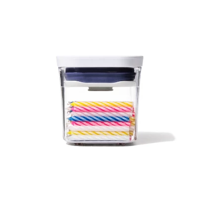 Dried herbs and spices will stay fresh—and tidy—with the OXO 4-Piece Mini POP Container Set. With the push of a button, OXO’s POP Containers create an airtight seal that locks in freshness; pop the button up and it doubles as a handle for opening. The space-efficient design stacks perfectly with all POP Container sizes. Helpful fill lines make storing spices simple and dishwasher-safe construction easily comes apart for cleaning. POP Containers aren’t just for kitchens: Use them in the office, bathrooms, desk drawers and anywhere you need a little extra organization. Set includes: Four 0.2 Qt/0.2 L Containers.